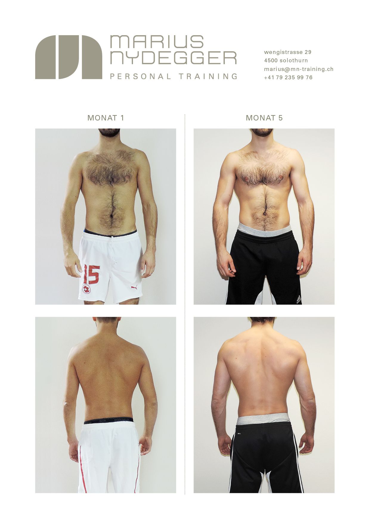 Im vorher/Nachher Bild zu sehen ist CoSaH Kunde Kevin Sigl, er hat in 5 Monaten über 9kg Magermasse aufgebaut.
