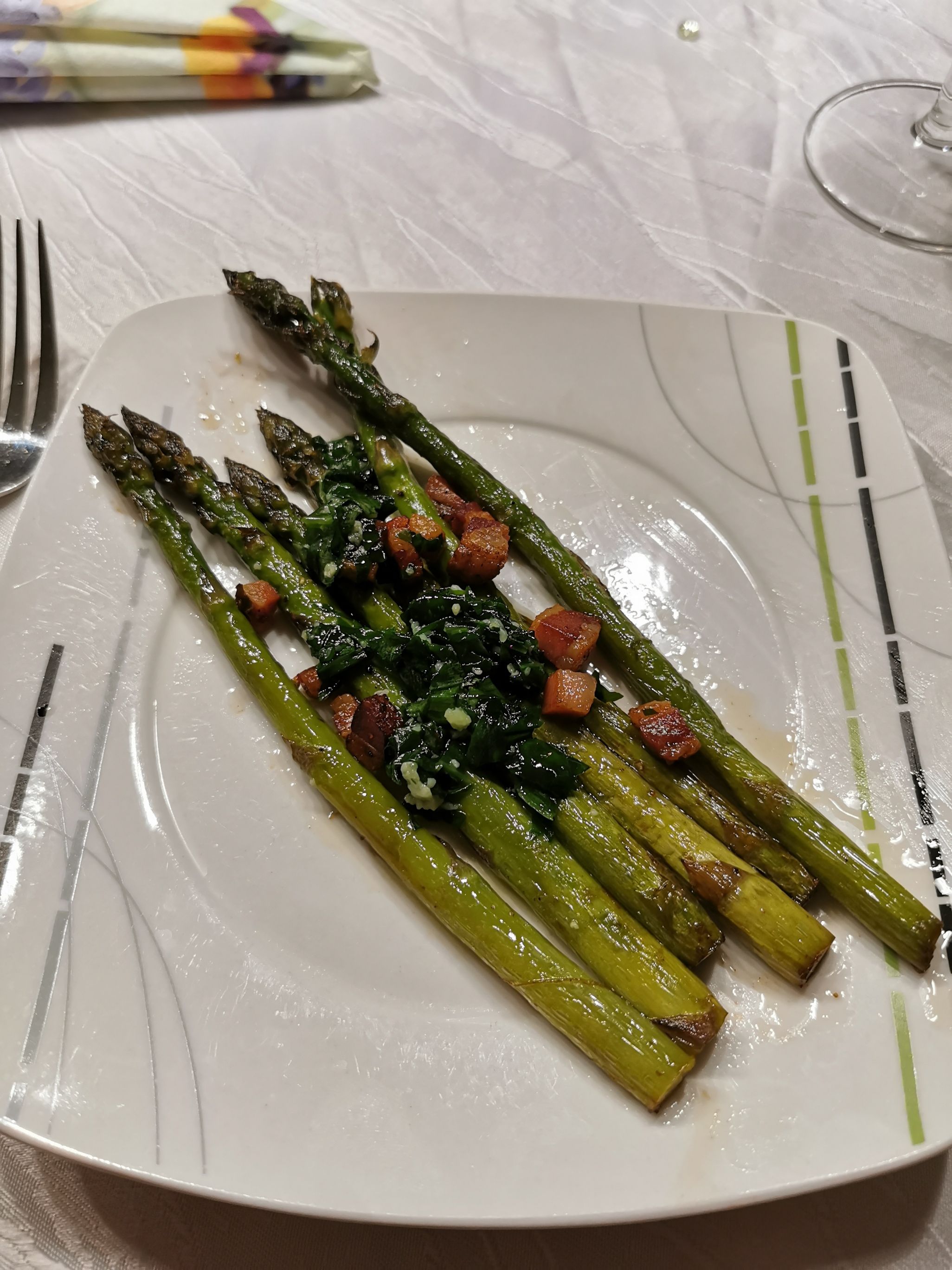 Im Bild zu sehen sind Spargeln mit Bärlauch Topping, eine hervorragende Kombo um leber zu unterstützen und die Körperfettreduktion zu beschleunigen.